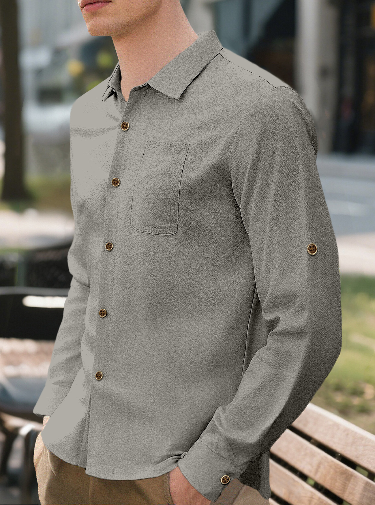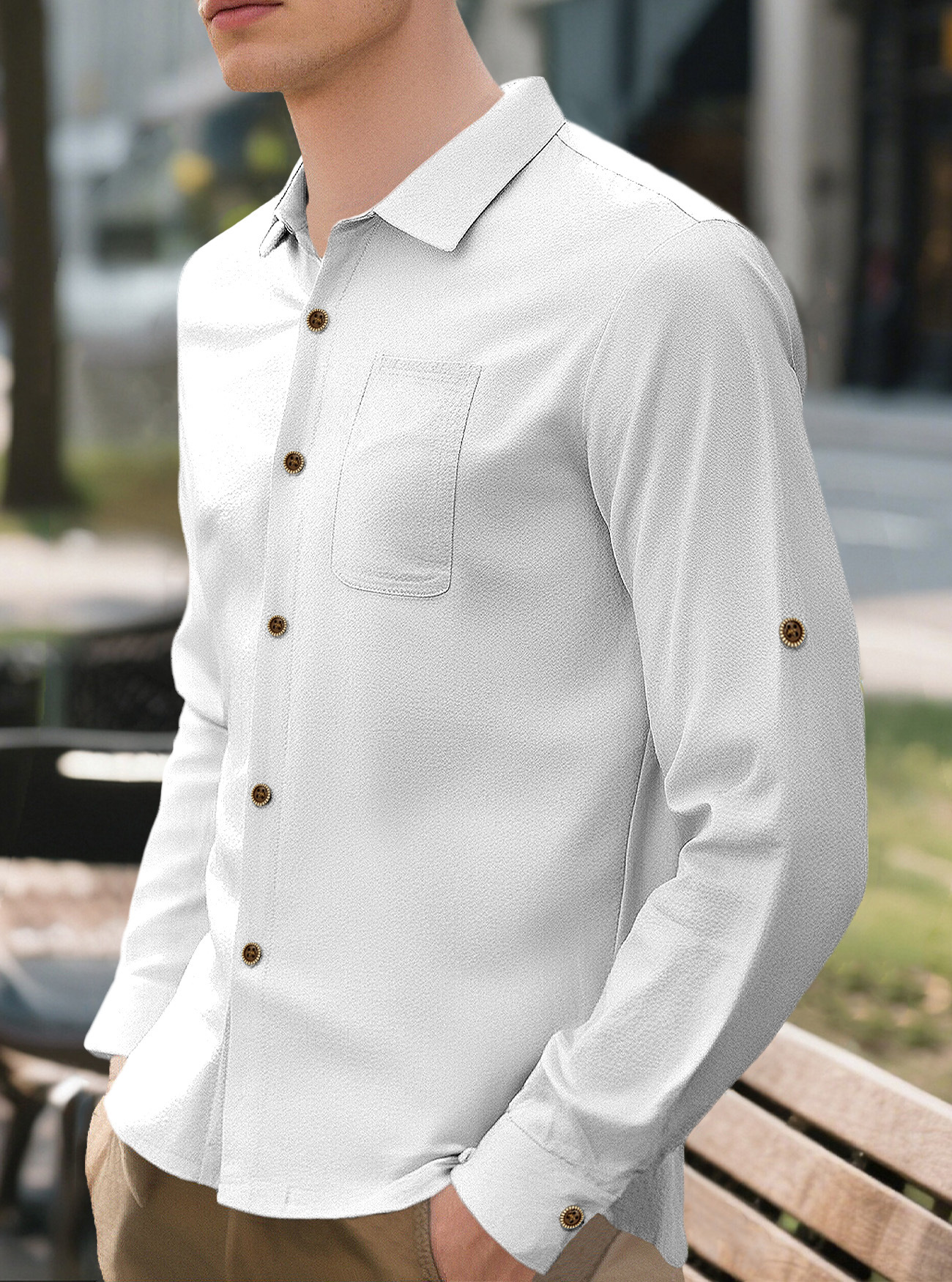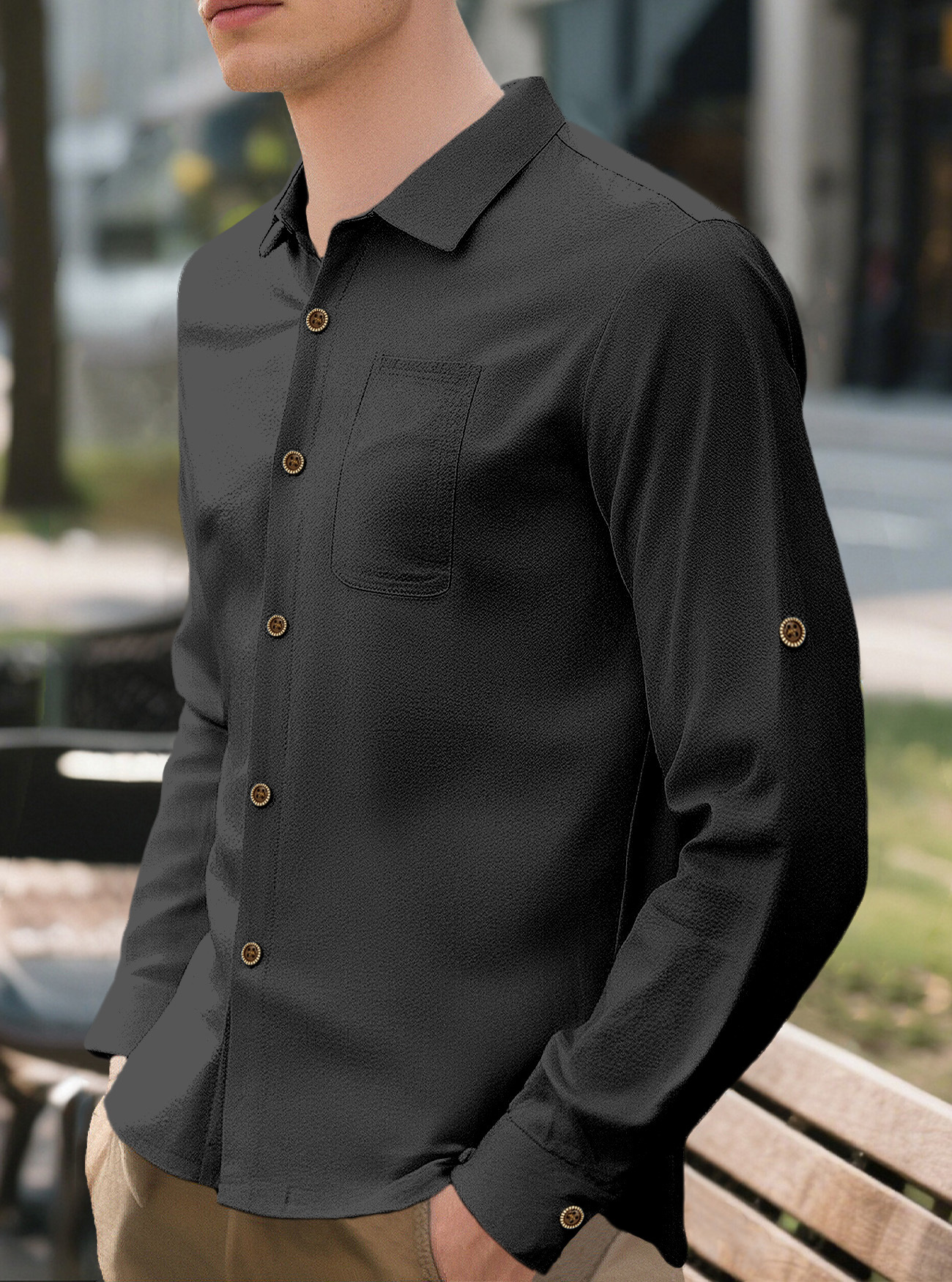 New Men's Solid Color Lapel Casual Loose Long Sleeve Shirt