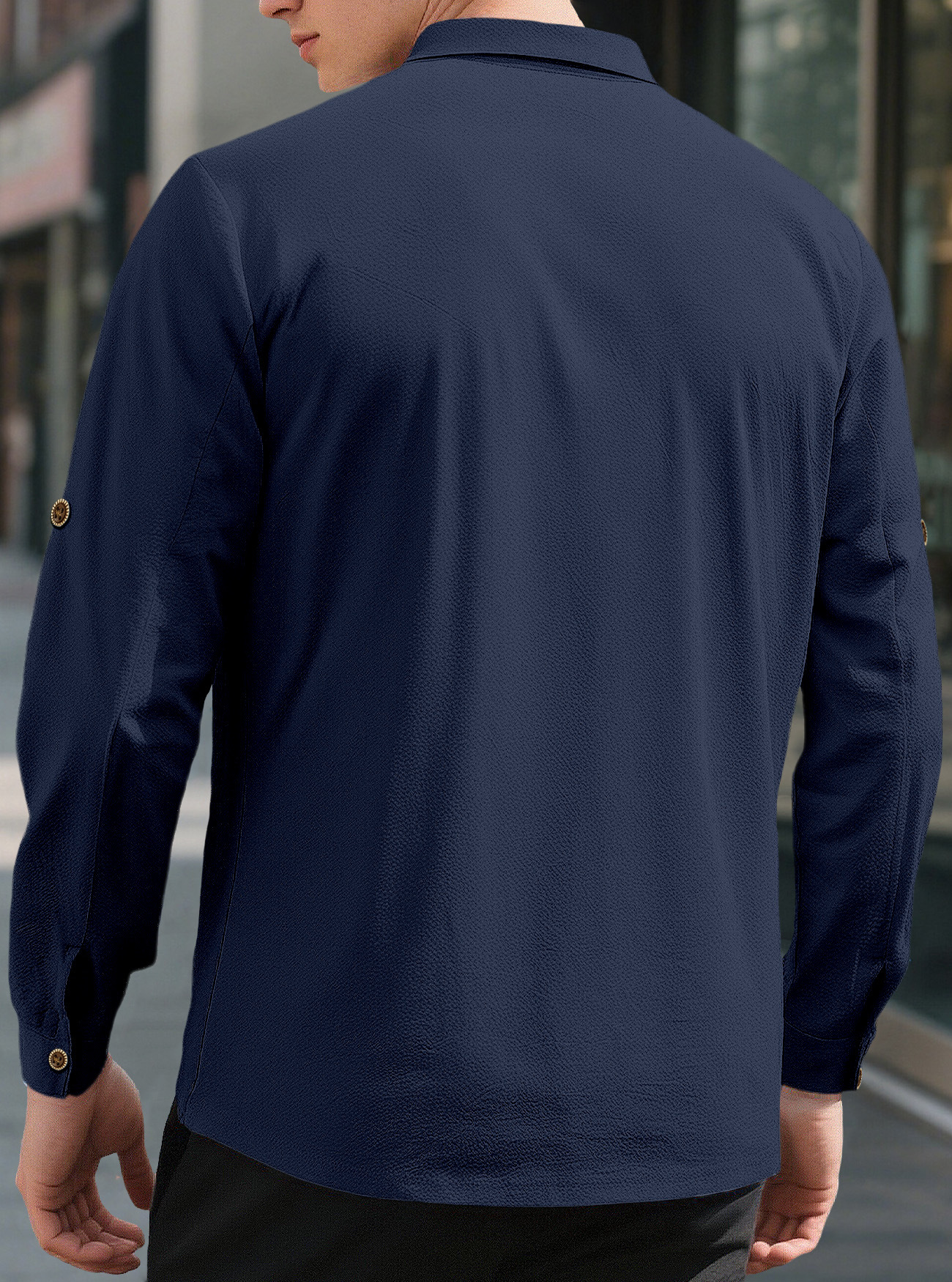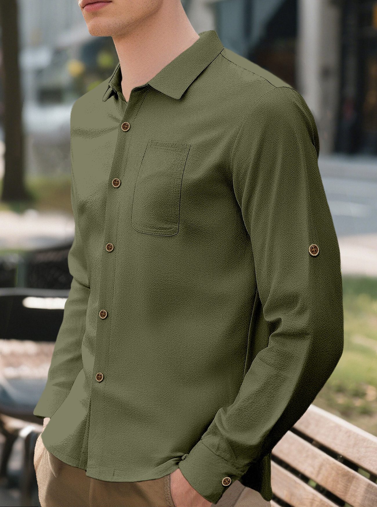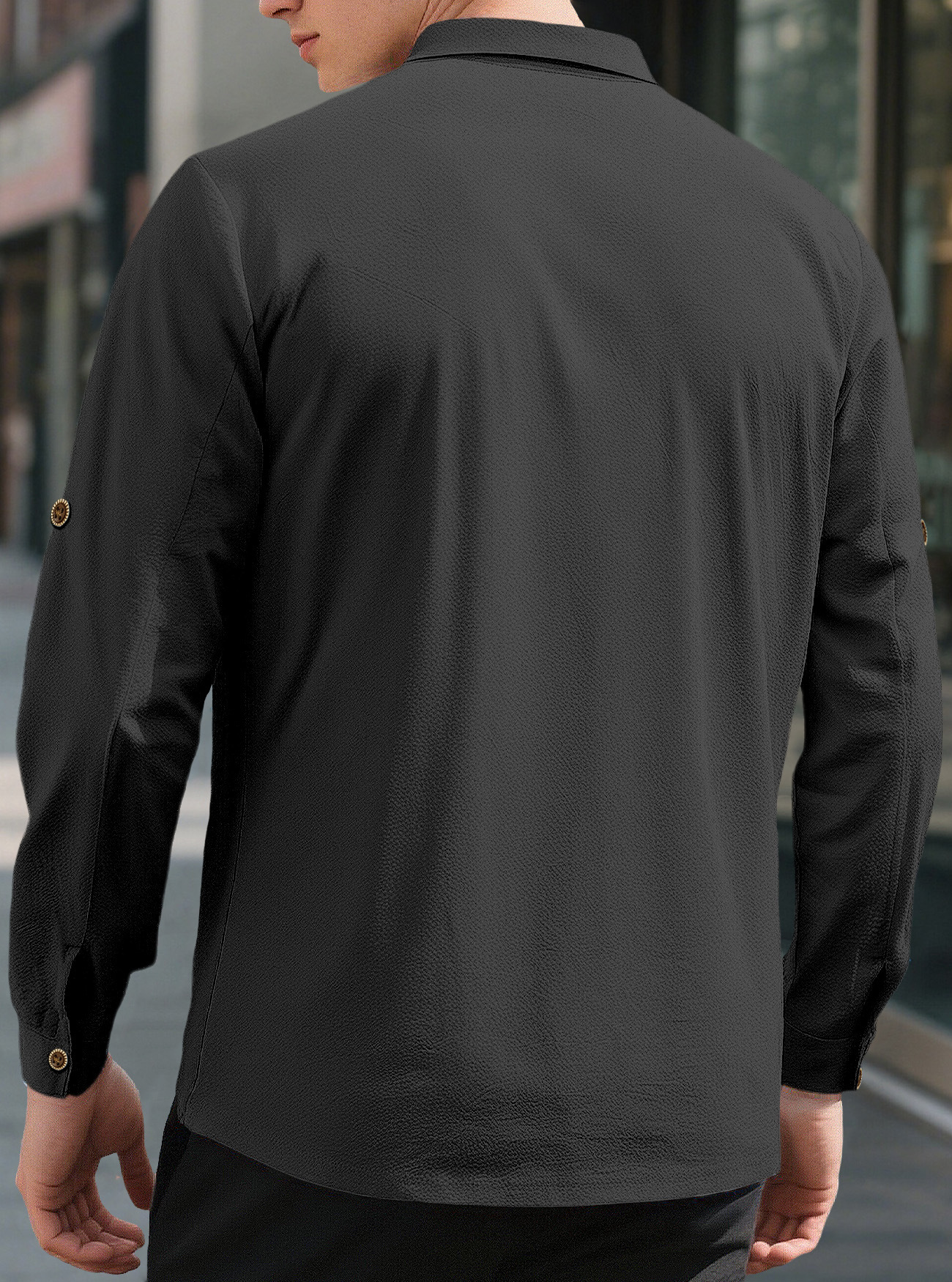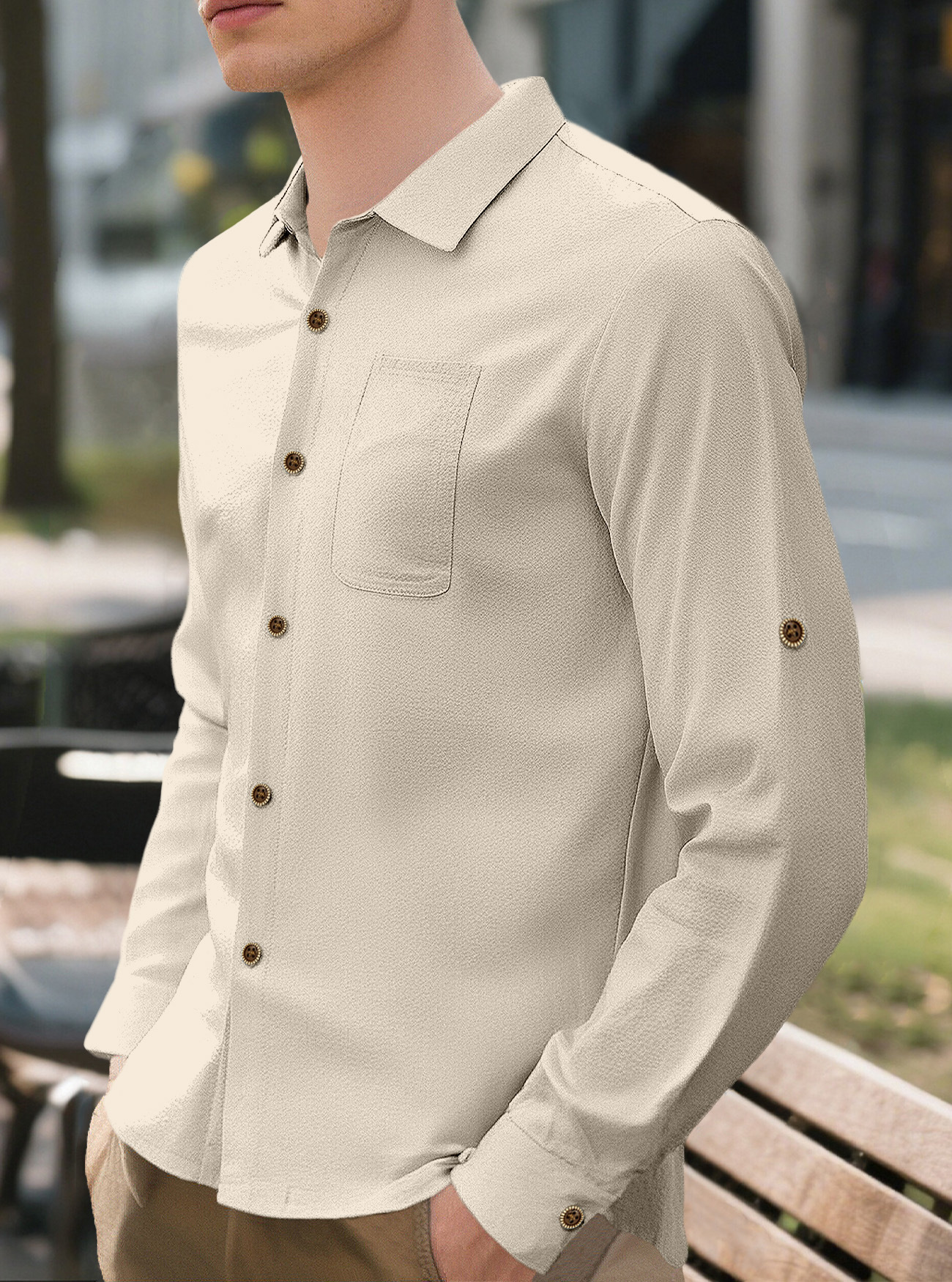 New Men's Solid Color Lapel Casual Loose Long Sleeve Shirt